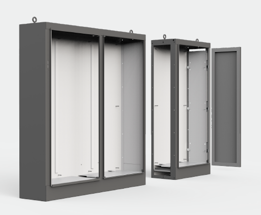 Universal Free-Stand enclosures speed design and modification with easy to choose accessories for large unibody enclosures. They can reduce labor and improve safety.